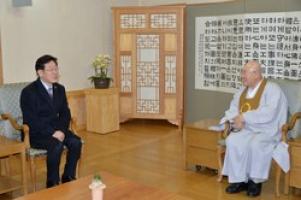 또 경산 종법사는 이 시장에게 "어려운 시대에 영웅이 난다고 하니 숙제가 많은 한국 사회에서 헤쳐 나갈 인물이 꼭 나올 것 같다"며 기대감을 표명하고 염주를 선물로 건넸다.