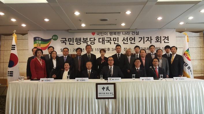 김천식 국민행복당 총재는 15일 오후 한국프레스센터 18층에서 대국민선언 기자회견을 가졌다. 김 총재는 이날 창당 선문을 통해 "청와대를 세종시로 옮기겠다"고 공약했다.