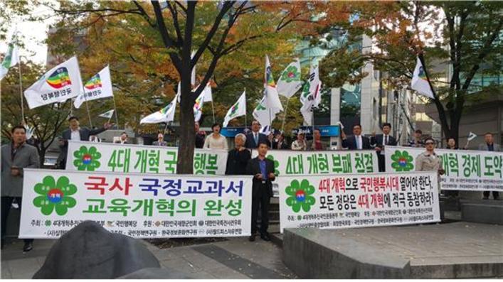 이어 “노동개혁의 입법화와 현재 첨예하게 대립되어 있는 역사교과서 문제 등 하루도 조용한 날이 없는 것 또한 현실이다. 그러나 역사문제도 가장 중요한 것은 진실만을 기록해야 한다는 것이다. 검증되지 않는 통설이나 이설은 역사에 기록되어서는 안 됩니다. 어느 누구도 역사를 호도하거나 바꿀 수 없다. 그리고 잘못된 역사는 반드시 바로 잡아야 한다”고 강조하면서 “좌 편향된 역사교과서가 존재하지 않았다면 국정화교과서를 만들겠다고 정부가 나서지 않았을 것이다. 이번 기회에 역사교과서 문제를 반드시 해결하고 교육개혁의 시발점으로 삼아야 한다고 생각 한다. 그리하여, 백년지대계의 하나인 교육개혁을 성공리에 마무리하자. 또한, 4대 개혁의 완수는 국민들은 물론이요! 모든 정당과 시민사회단체의 협조가 무엇보다도 필요하다”면서“국가의 미래와 대한민국의 융성을 담보하기 위한 4대개혁에 특히 모든 정당 및 정치권의 참여”를 촉구했다.